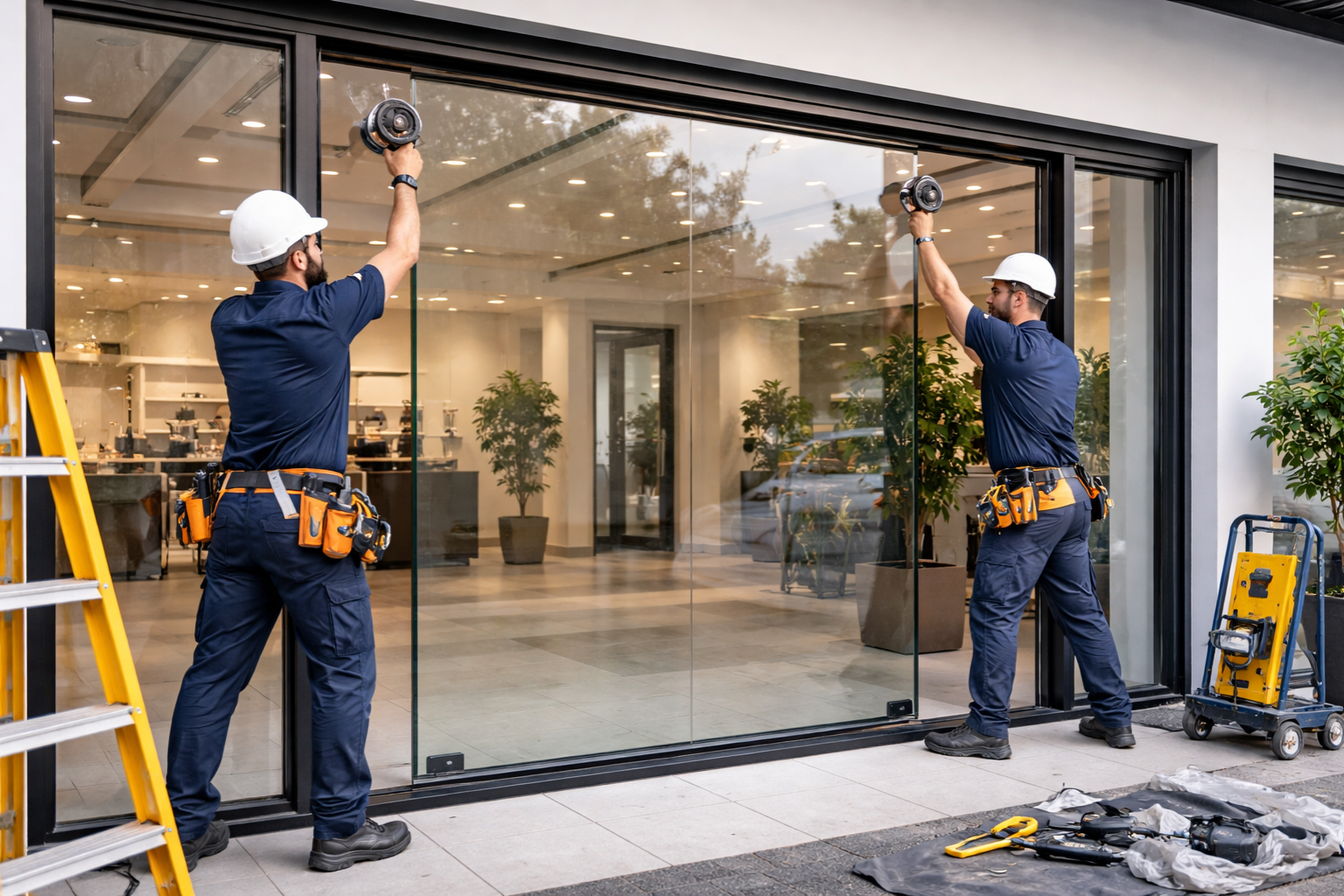 Premium frameless glass shopfronts for retail outlets and malls, offering maximum visibility, durability, and a luxurious look.