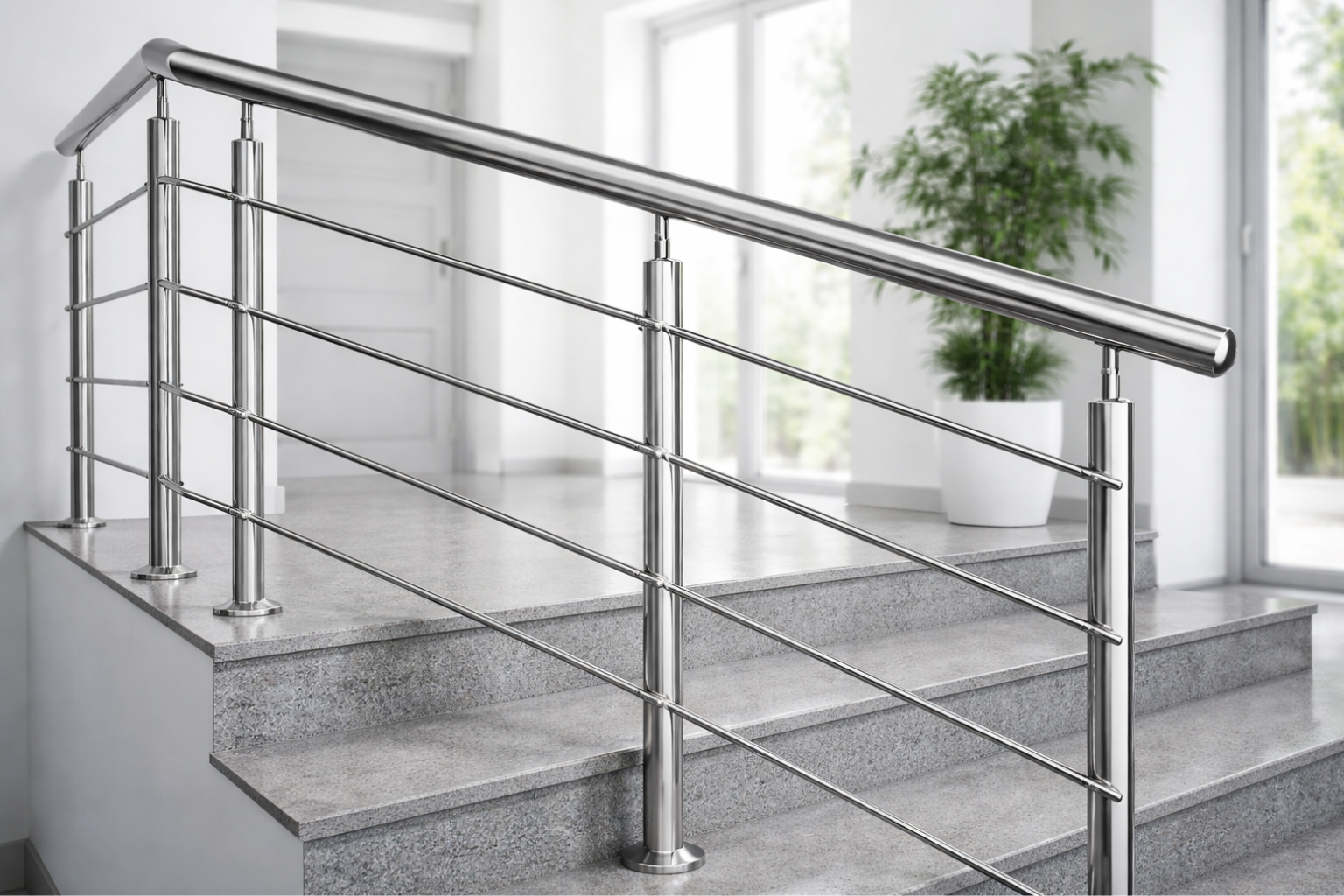 Modern glass balustrades with frameless or stainless steel designs, ensuring safety and clear views for balconies, terraces, and staircases.
